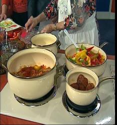| HELEN PREPARED THE FAMOUS HUNGARIAN HUNGARIAN MIXED PEPPER STEW WITH KOLBASZ and RICE Lecso Kolbászal |